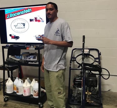 Our team is fully trained and certified in all areas of residential and commercial exterior cleaning, including ladder safety, soft washing, pressure washing, and high-rise window cleaning. We also specialize in tough stain removal services, such as rust, oil, grease, and efflorescence stains on driveways, patios, and building exteriors.